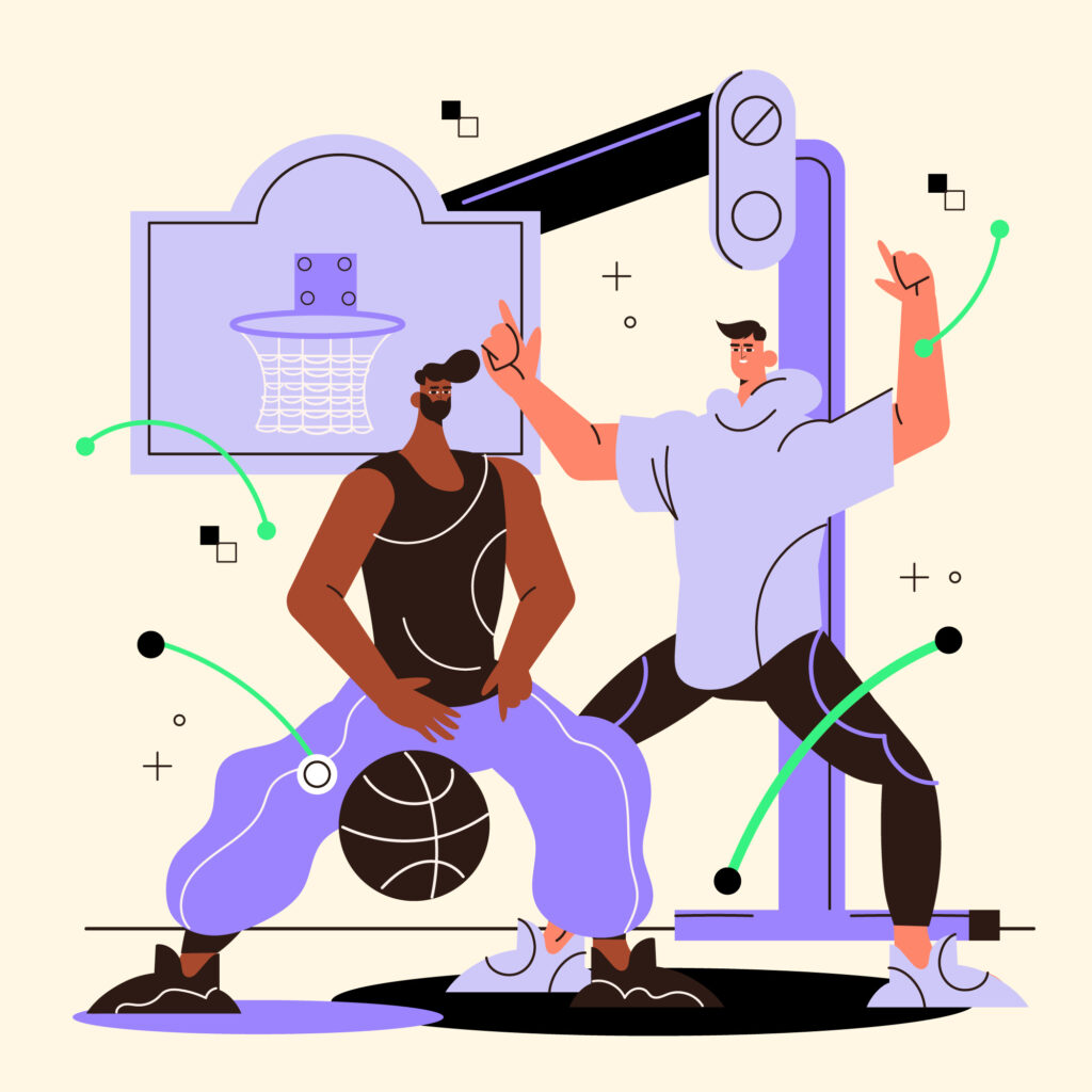 Athletes carrying different sport icons